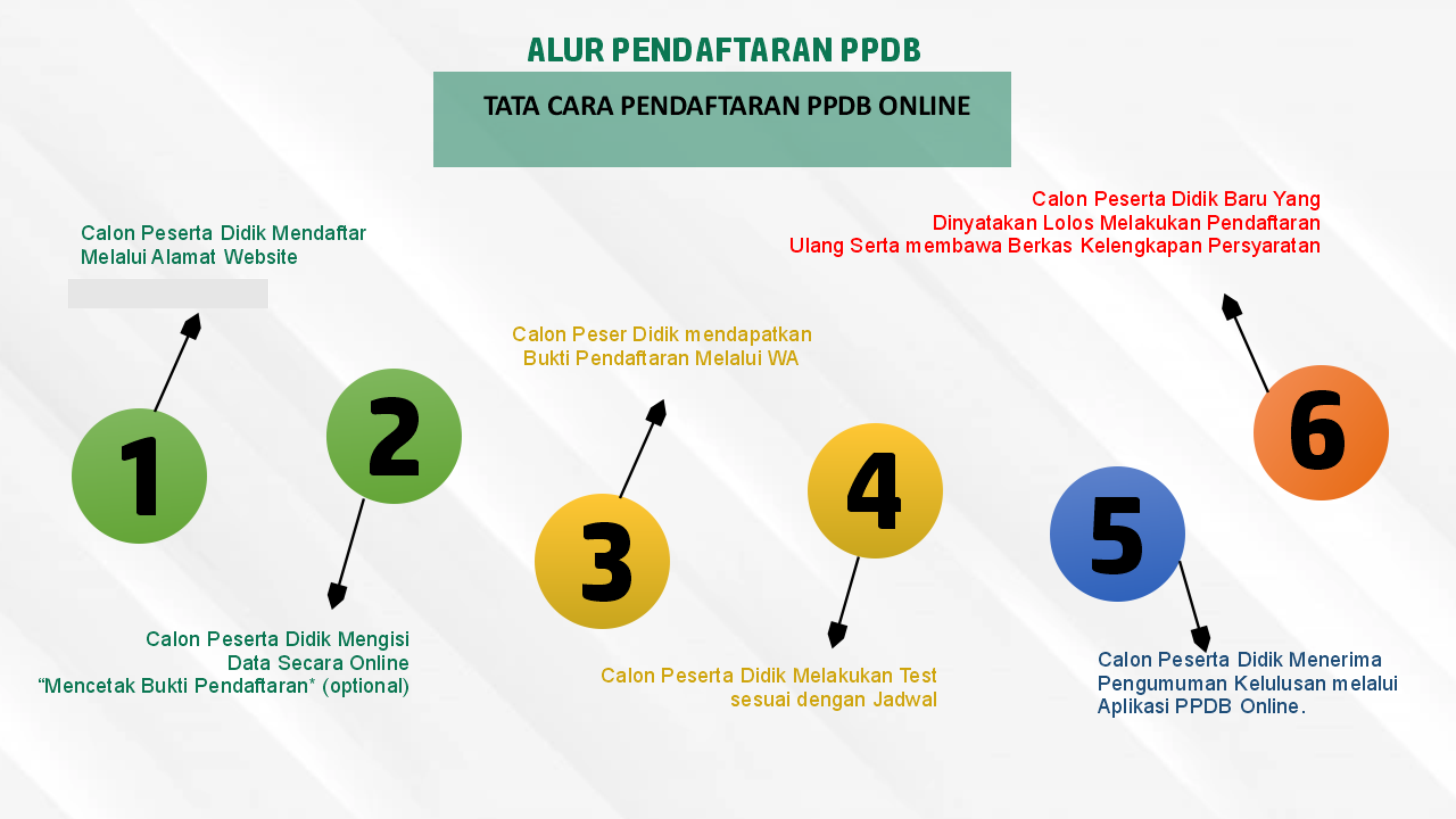 Pengisian form PPDB Online mohon diperhatikan data yang dibutuhkan yang nantinya akan dipakai dalam proses PPDB. Setelah proses pengisian form PPDB secara online berhasil dilakukan, calon siswa akan mendapat bukti daftar dengan nomor pendaftaran dan harus disimpan yang akan digunakan untuk proses selanjutnya.
